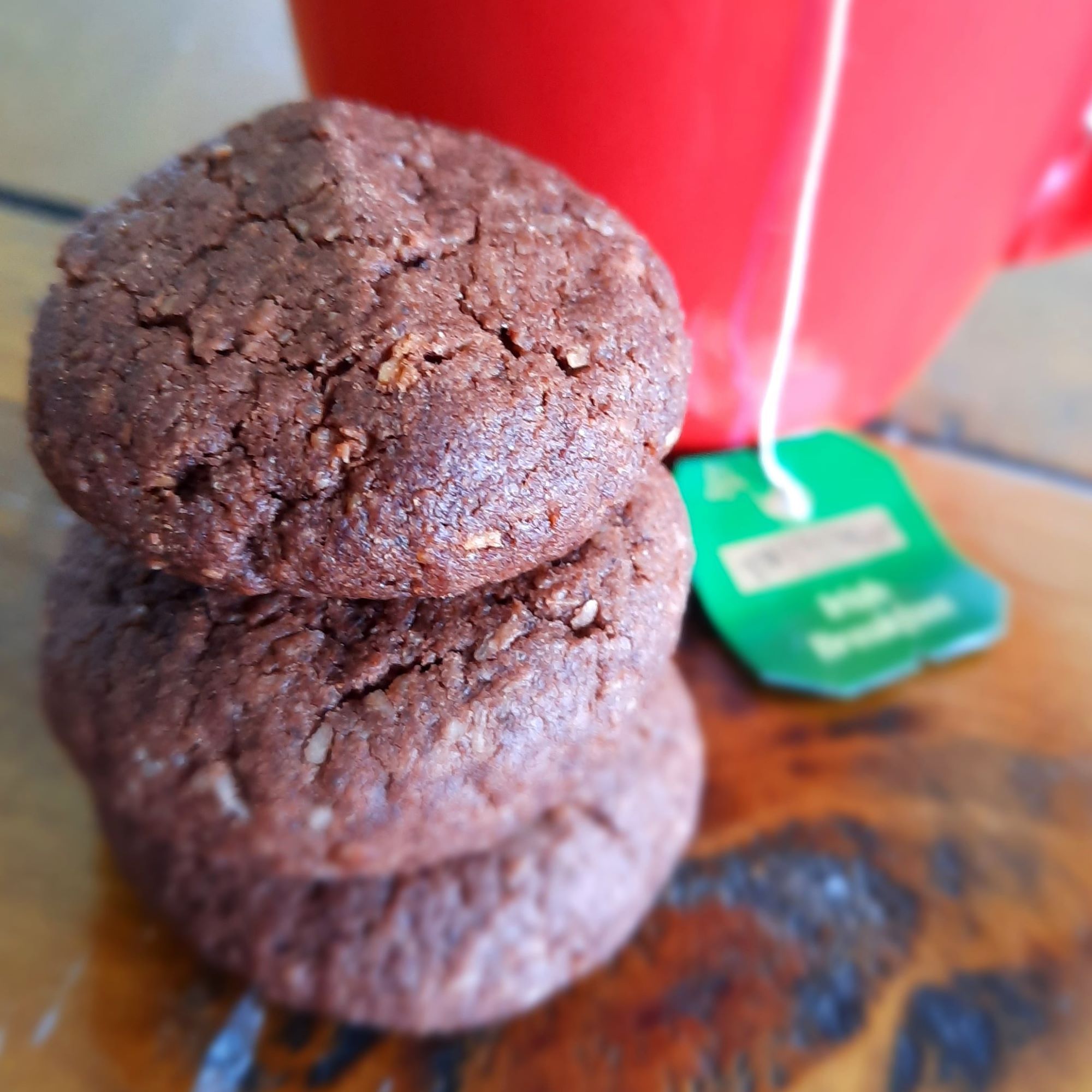Cream butter and sugar til light. Add egg. Fold in flour and cocoa. Add coconut and mix well. Cook teaspoons on a greased tray. Bake at 200 deg cel for approx 10 min.